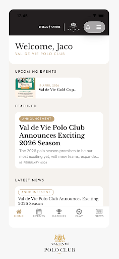 The Val de Vie Polo Club app showcases a sleek and modern user interface designed with user experience in mind. The app's graphics are visually appealing, featuring rich imagery of polo matches, the stunning landscapes of the Cape Winelands, and well-organized menus that facilitate easy navigation. The color scheme is sophisticated, using earthy tones that resonate with the natural beauty of the polo estate. The screenshots reveal a clear layout with easy-to-read text, vibrant visuals that capture the essence of polo, and interactive elements that enhance user engagement. Each section of the app is designed to provide a seamless experience, whether you're checking match scores, registering for an event, or managing your membership.